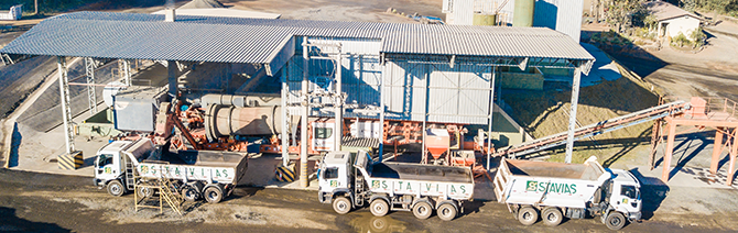 A produção de massa asfáltica ocorre pelo método volumétrico, com secagem por contrafluxo e misturador tipo pug-mill, com os equipamentos e traços asfálticos homologados nas principais concessionárias da região.